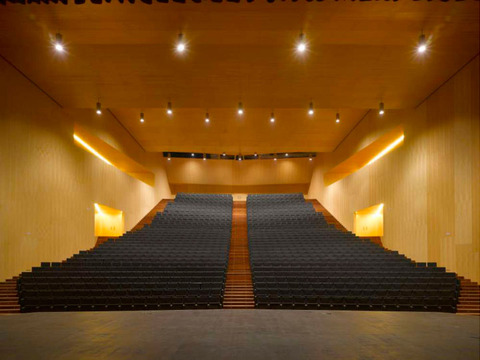 Of the Auditorium in Teulada he tells us that this project started many years ago and the most relevant element is about the orographical aspect. In fact in this building is pursued the conceptual, not physical, connection between the built up area and the region. The Mediterranean light is so powerfully strong and predominant, that Mangado had to discover how to guarantee, even in summer, the use of the structure built by concrete. A compact, thick, metaphysical place, which masterfully shows the successful relation between technology and tradition.