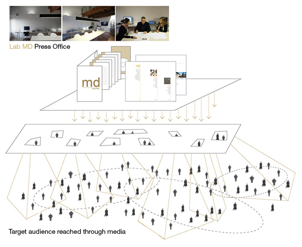 The press office of MD Lab is structured to produce textual and iconographic content related projects and information, awareness, promotion initiatives - undertaken by institutions, associations, companies - to be divulged to the media by developing a dialogue with the newsrooms and managing personalised relationships with reporters and editors.