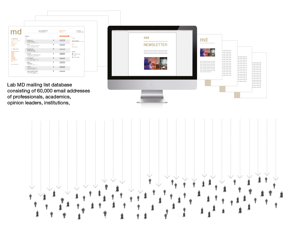 La newsletter MD è inviata ad una mailing list di circa 60.000 destinatari: docenti e ricercatori universitari, funzionari di istituzioni e associazioni di categoria, progettisti nazionali e internazionali, responsabili di aziende produttive ecc.