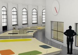 Rendering dell’allestimento, progetto di Pierre Charpin
