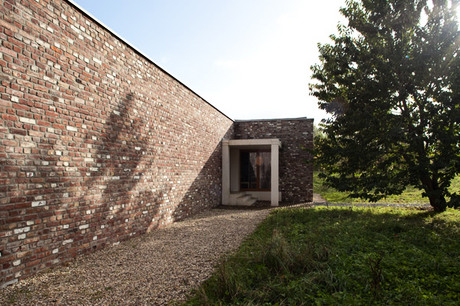 A partire dal 1983, il benefattore nonché collezionista d’arte Karl-Heinrich Müller ha iniziato la realizzazione di edifici per esposizione, uno dopo l’altro, in un parco naturale nell’isola di Hombroich vicino Neuss, Germania. Qualche tempo fa, l’architetto portoghese Álvaro Siza in collaborazione con l’architetto della chiesa di S. Stefano, Rudolf Finsterwalder, ha progettato un nuovo Museo dell’Architettura nella stessa zona. Questo edificio tranquillo e senza pretese è quasi interamente in mattoni. Quando, al caldo dell’alba, i muri in mattoni sfavillano di un rosso pieno e le finestre e le porte in legno si illuminano di un dolce giallo, l’edificio, con tutto il verde circostante, sembra fuso in un quadro impressionista. Il rispetto per l’ambiente naturale circostante che l’architetto ha applicato attraverso questa costruzione – e questi materiali – appare evidente. I mattoni, riciclati a seguito della demolizione di un altro edificio, erano logorati e scheggiati: a malapena qualcuno di questi mattoni ha conservato i rettilinei spigoli originali e circa il 2% ancora mostra il colore bianco di una pittura o al più un ricordo di esso. Il risultato finale è un ardente e fantasioso muro “vivente”.